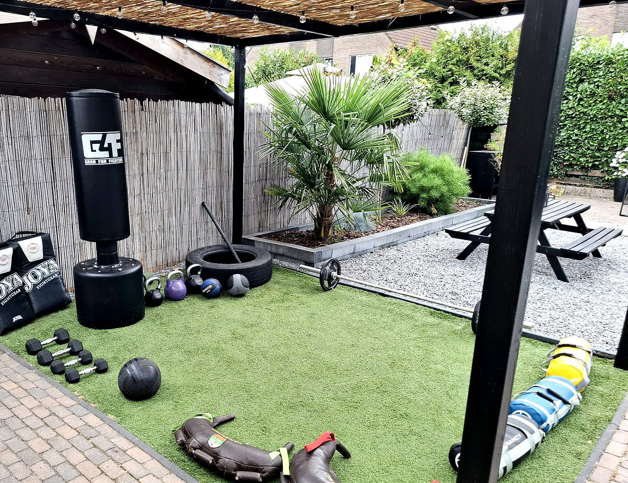 En weet je wat het extra fijn maakt? Je traint gewoon buiten. Frisse lucht, genoeg ruimte om los te gaan en tóch overkapt, zodat de regen je niet in de weg zit. Want nat worden… daar houden we bij Boksend Ontwikkelen niet zo van.